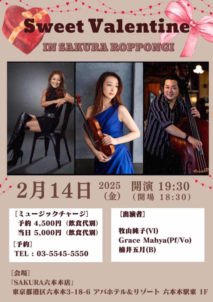 【出演】Grace Mahya(pf,vo) 牧山純子(vln) 楠井五月(b)