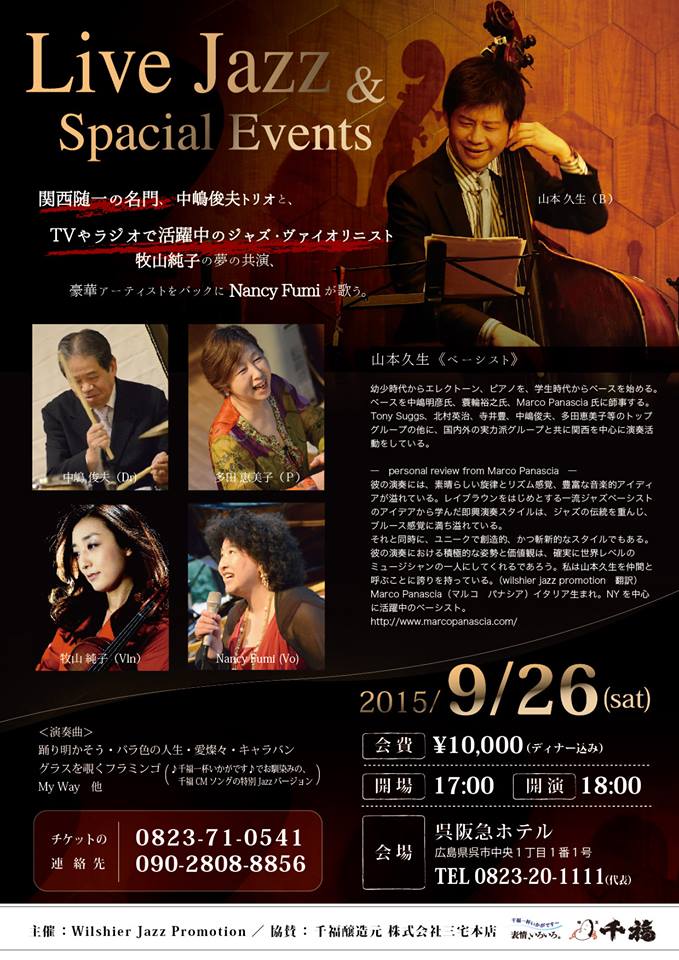 村田隆行(b)、村田千紘(tp)、柴田敏孝(p)、衣笠智英(ds、力丸(vo)、牧山純子(vln)