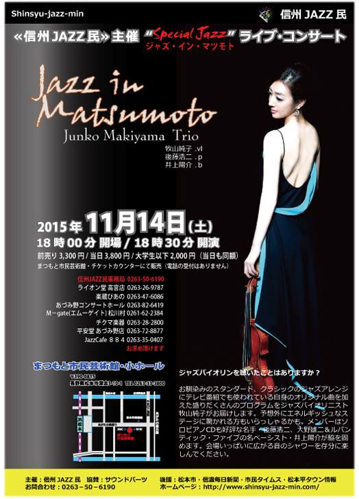 佐久間優子(p)、嶌田憲二(b)、牧原正洋(tp)、牧山 純子(vln)