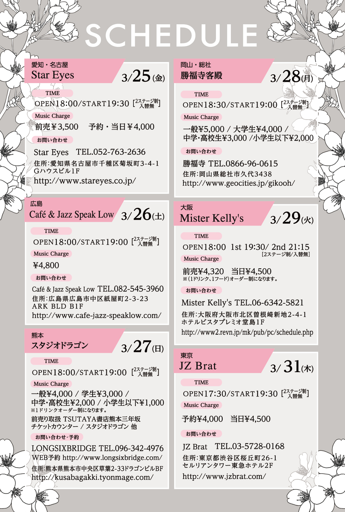 【music charge】予約¥3,500 / 当日¥4,000 / 学生料金(予約・当日共通)¥2,500