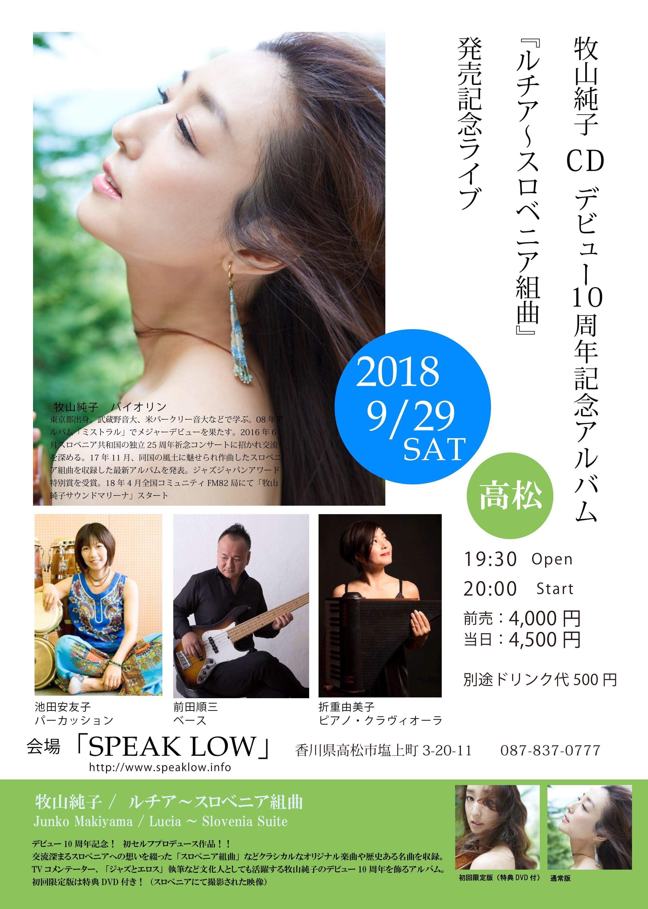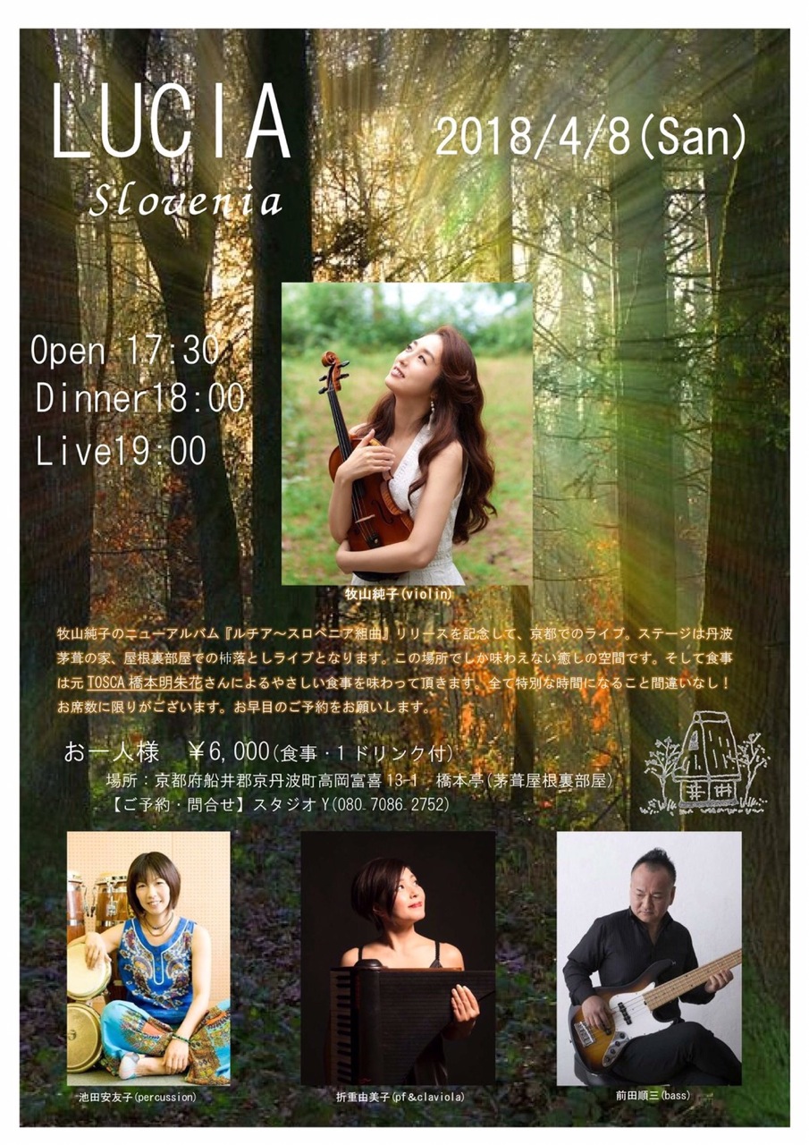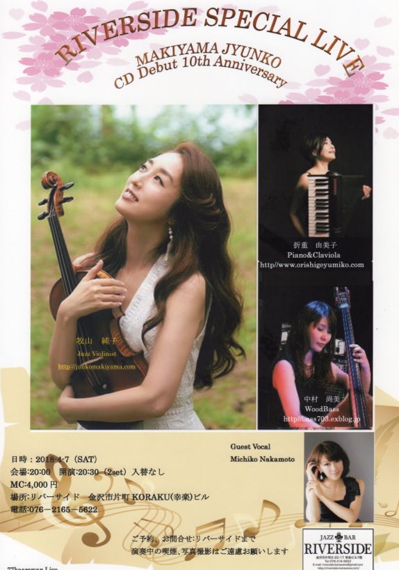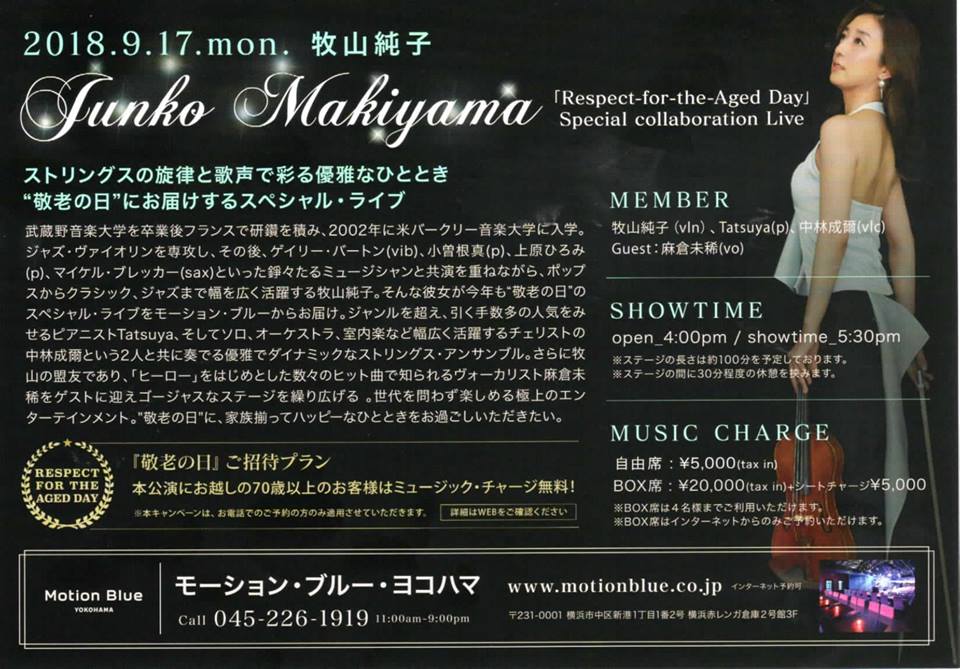 【出演】牧山純子(vln) Tatsuya(p) 日景修(b) 萱谷亮一(perc)