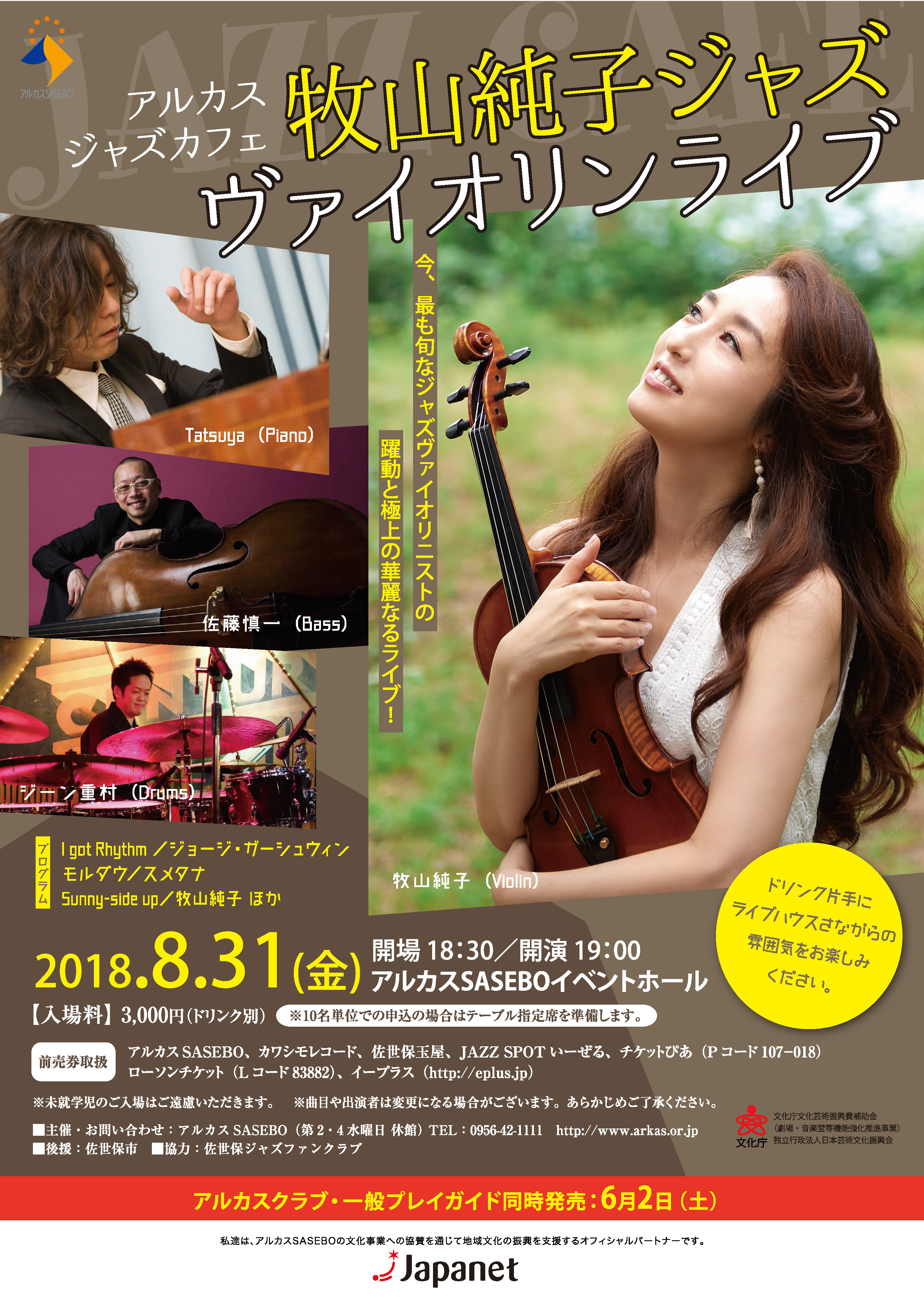 【出演】牧山純子(vln)Tatsuya(pf)ジーン重村(ds)