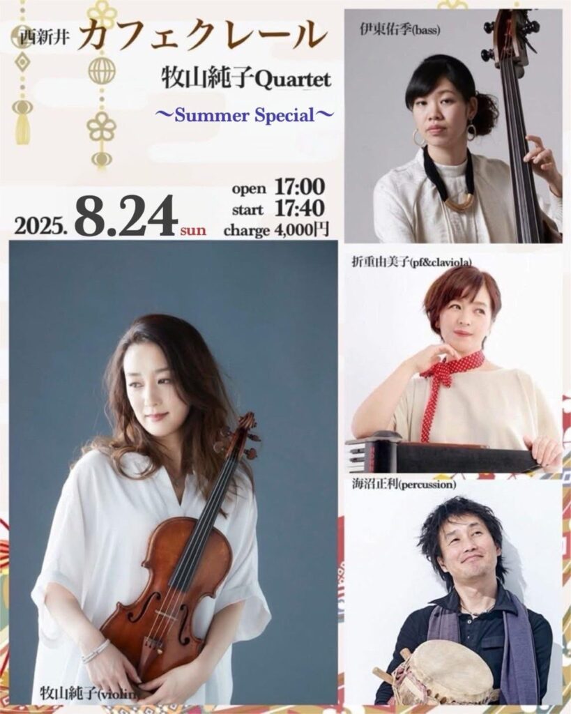 【出演】 牧山純子(violin) 伊東佑季(bass) 海沼正利(percussion) 折重由美子(pf&claviola)