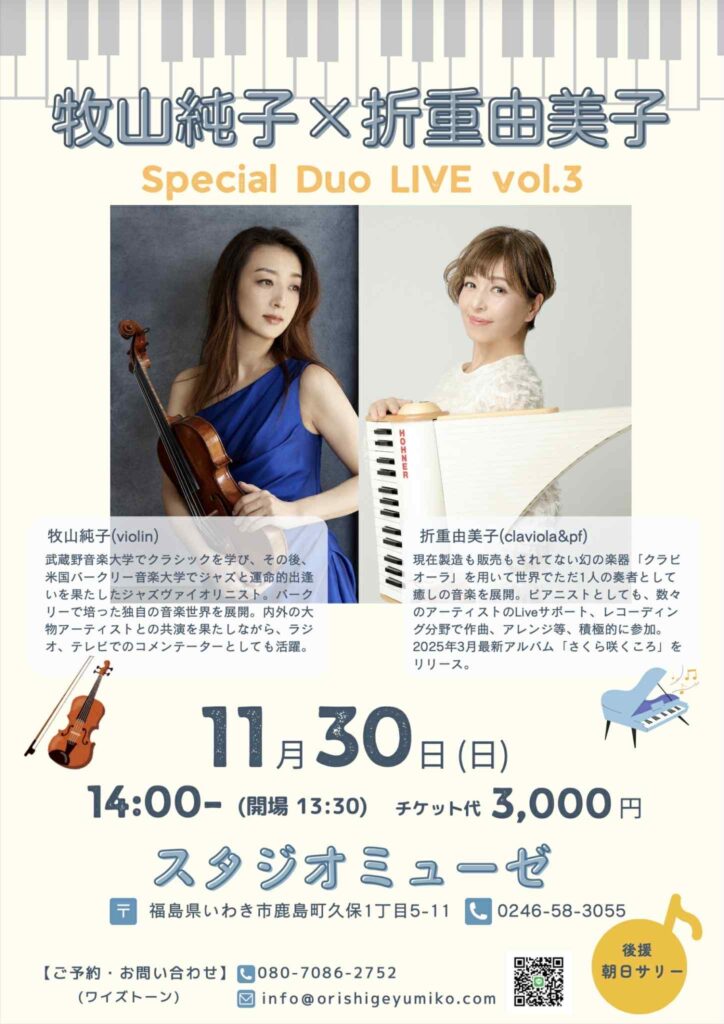 11月30日(日)いわきスタジオミューゼ 牧山純子☓折重由美子 Special Duo LIVE vol.3